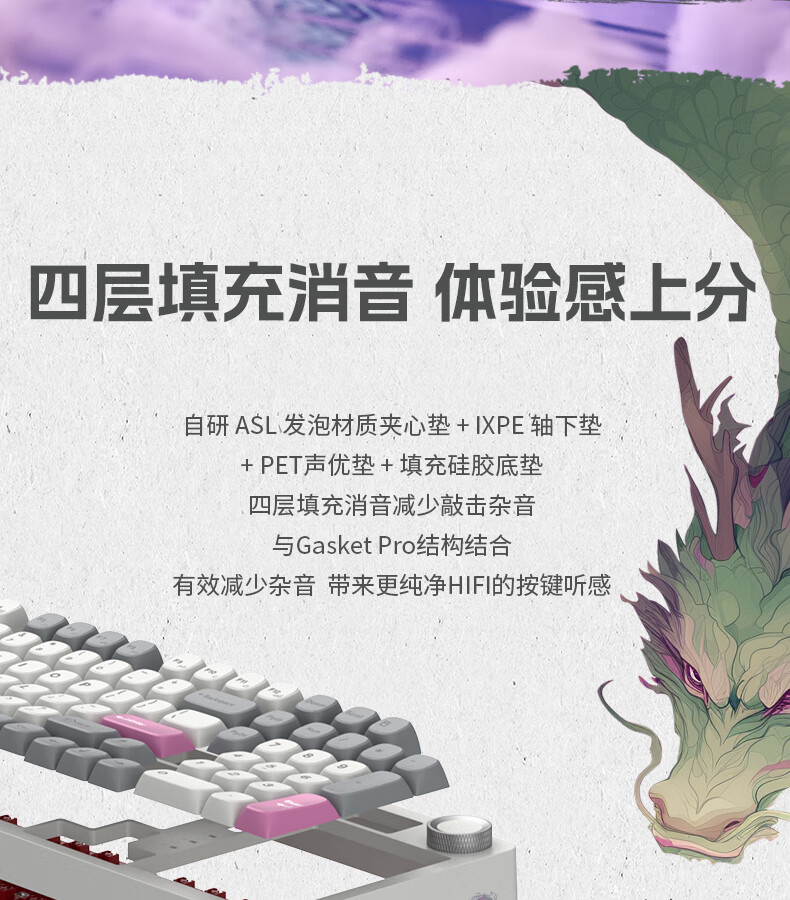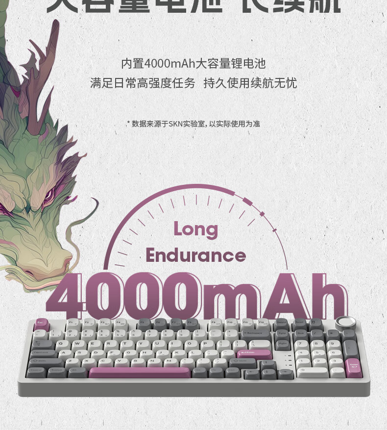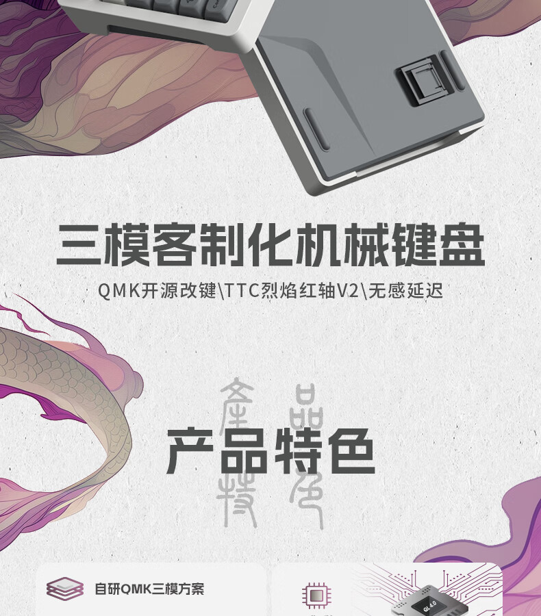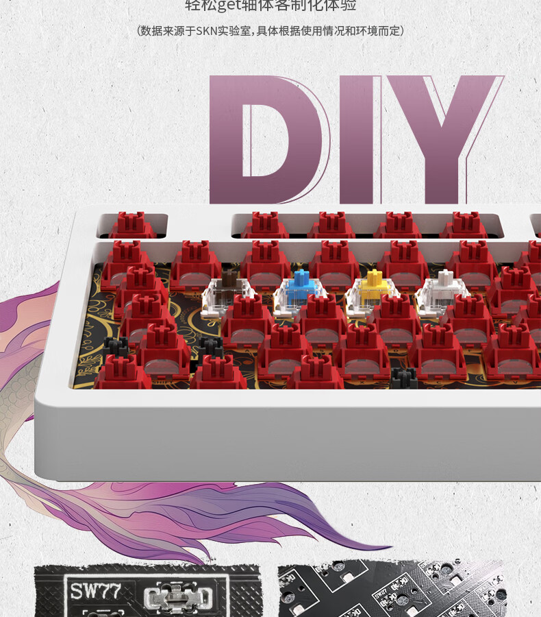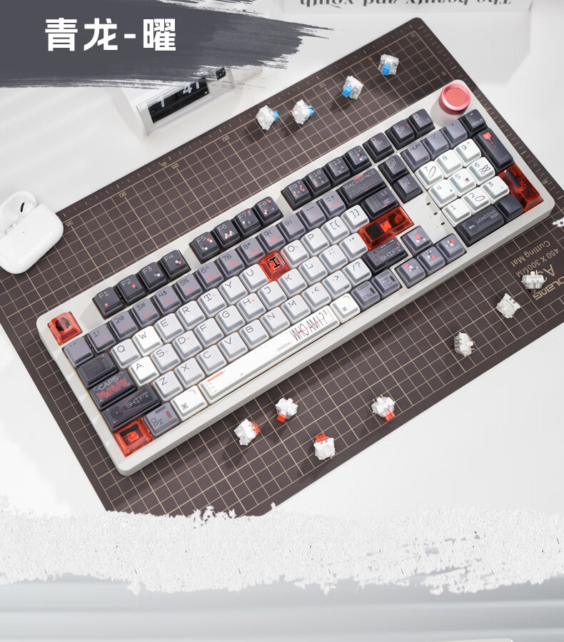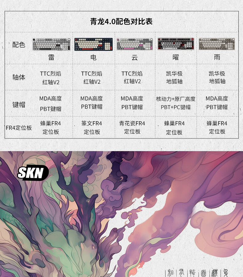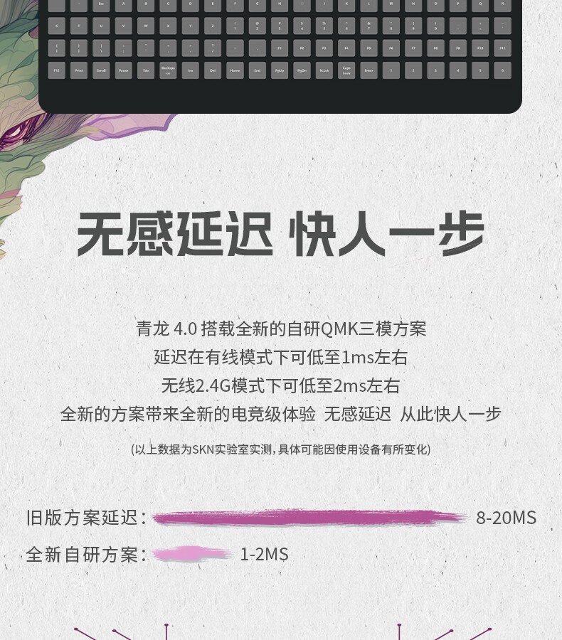 SKN青龙4.0 机械键盘 三模无线键盘 Gasket客制化键盘 98配列游戏办公键盘 QMK/VIA开源改键 无感延迟 青龙4.0云-TTC烈焰红轴V2RGB