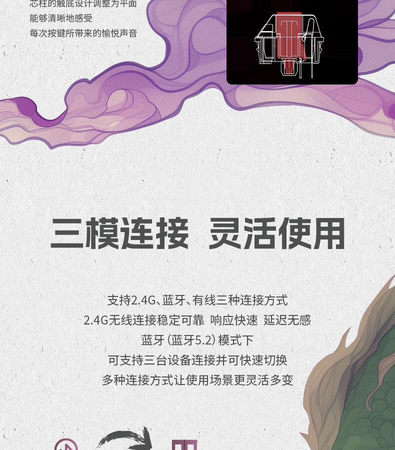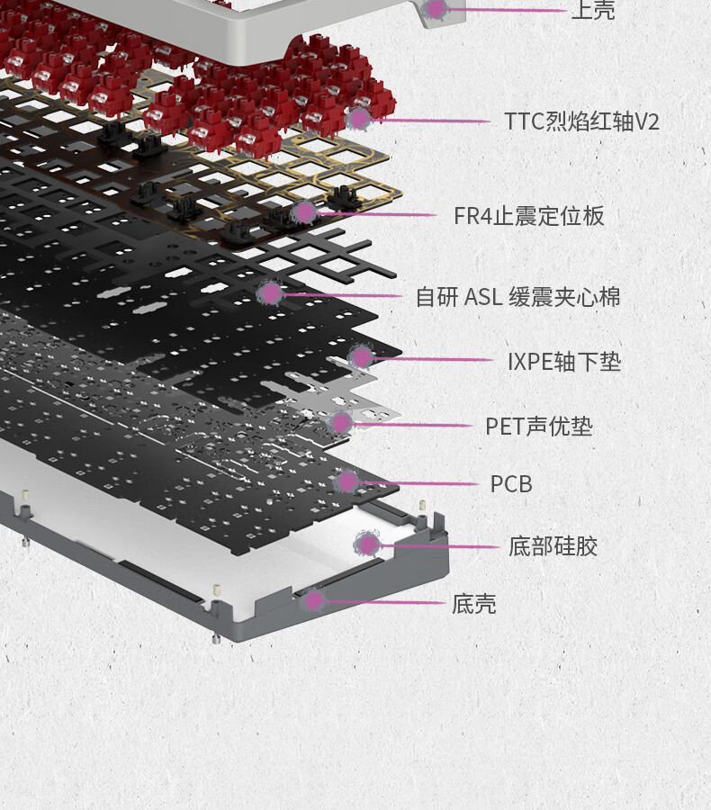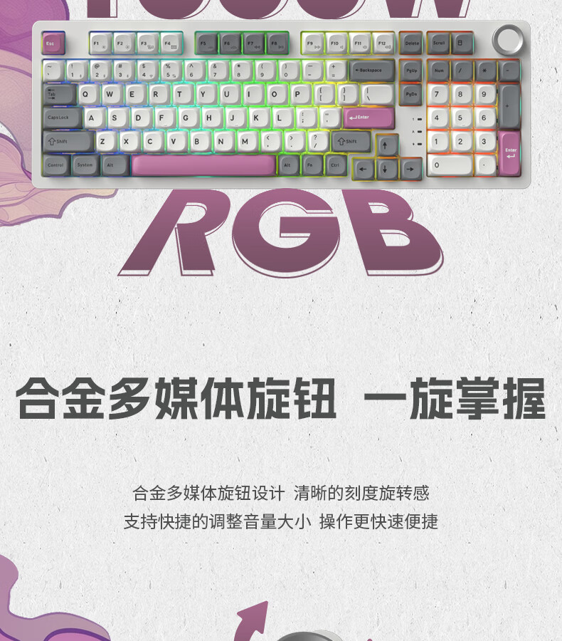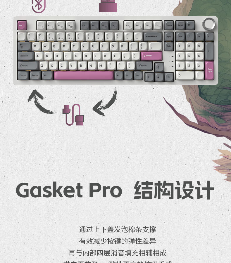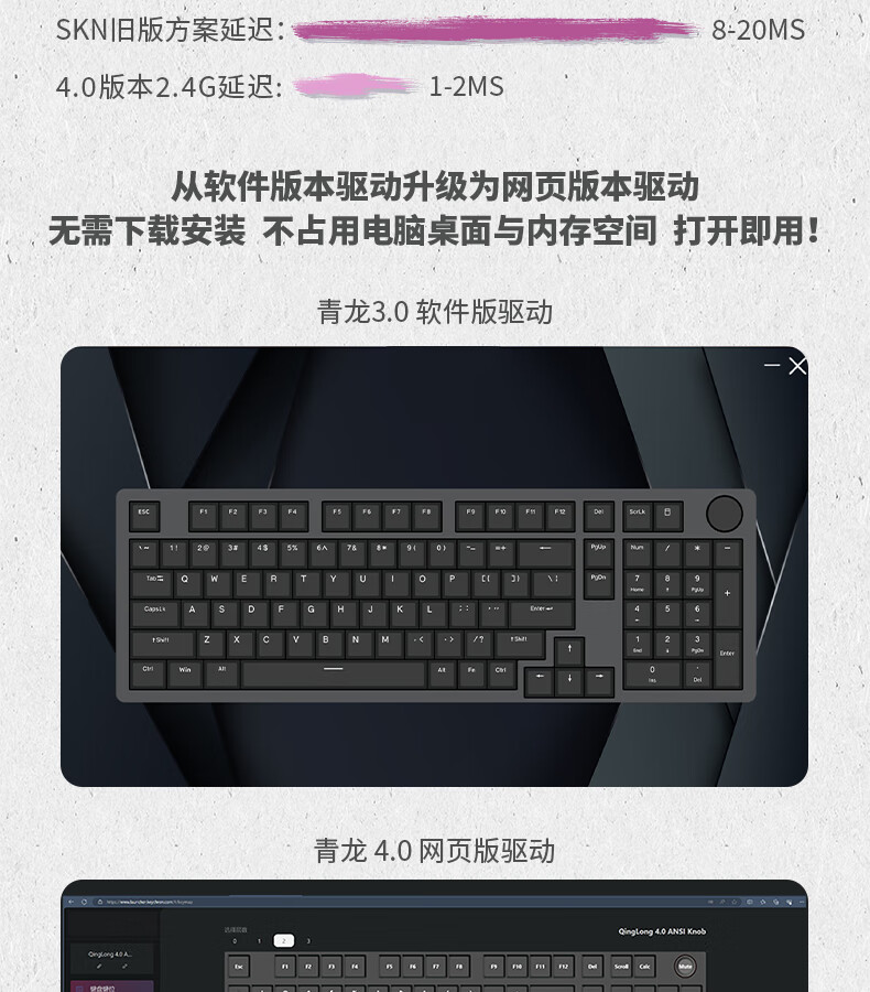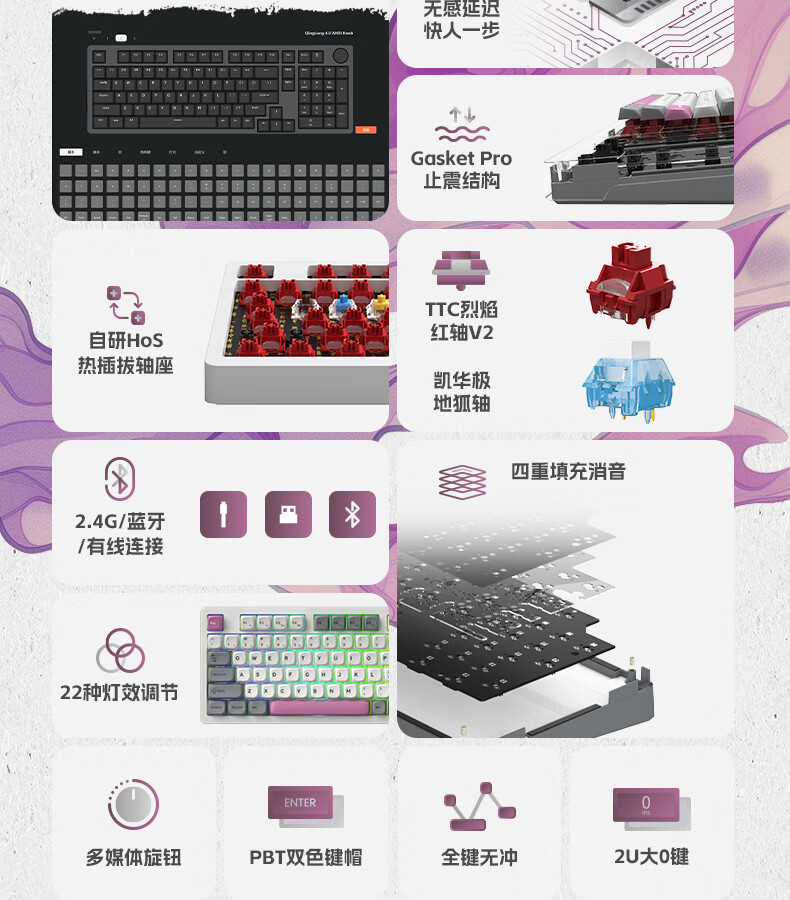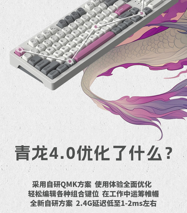 SKN青龙4.0 机械键盘 三模无线键盘 Gasket客制化键盘 98配列游戏办公键盘 QMK/VIA开源改键 无感延迟 青龙4.0云-TTC烈焰红轴V2RGB