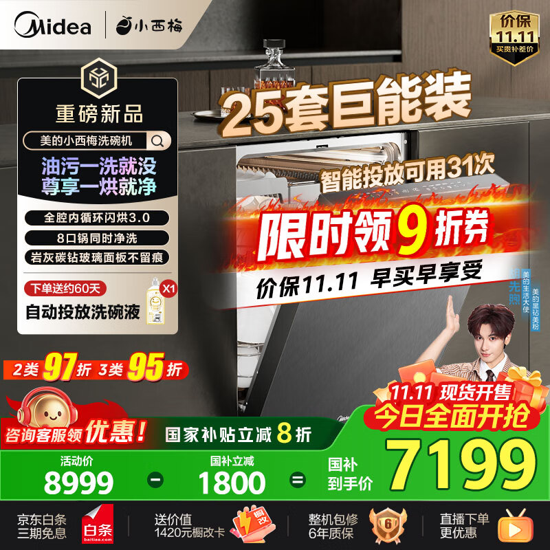 美的(Midea)【25套小西梅洗碗机】GX1200Max尊享版洗碗机嵌入式智能投放万向五臂飓风洗内循环烘干七星消杀