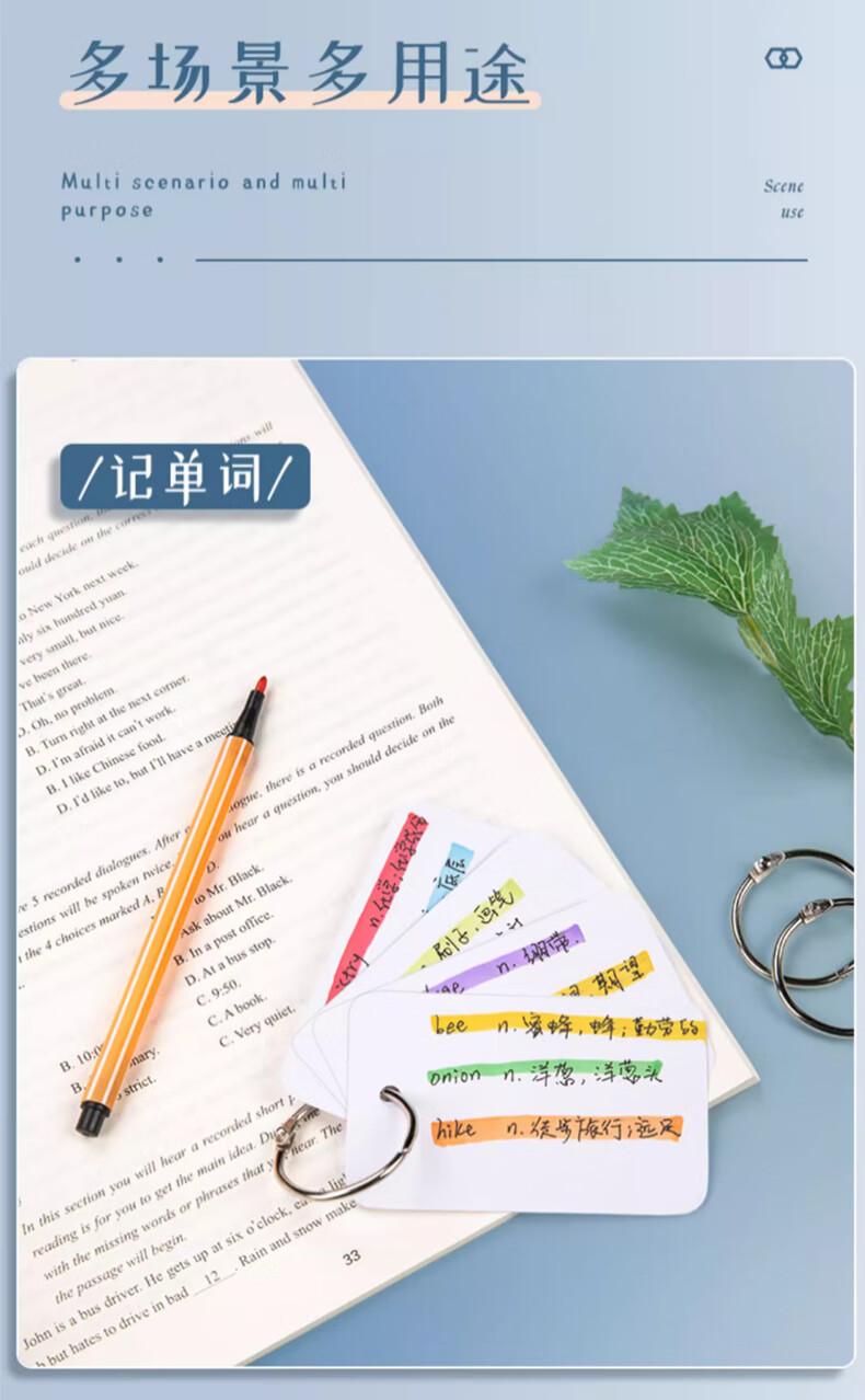 离草空白英语单词卡片活页本白色幼儿学前教育硬卡纸便携活页随身记背记忆手写学习自制卡 400张