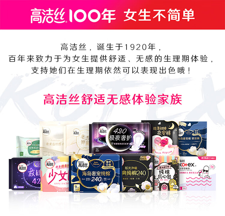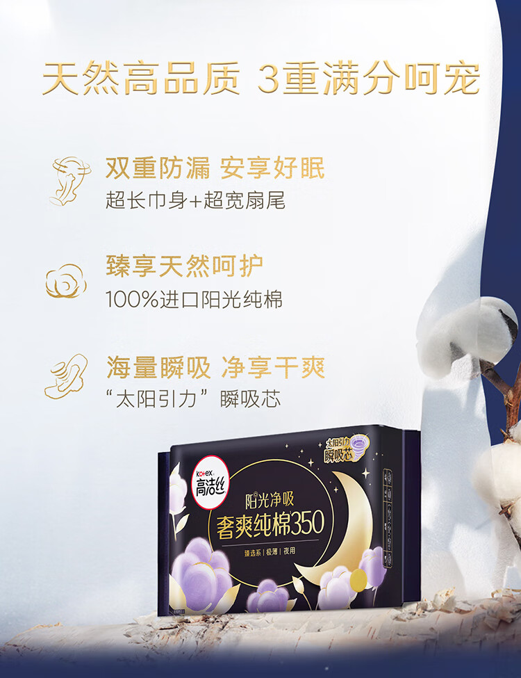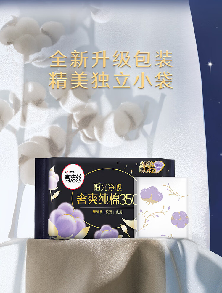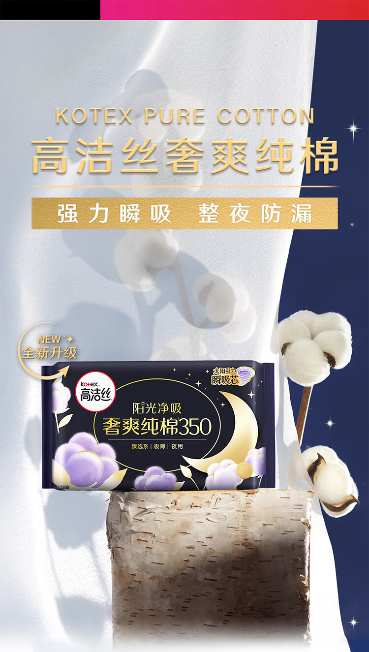 高洁丝(Kotex)【29选6】卫生巾 学生系列 奢爽纤巧棉柔日夜用防漏姨妈巾 放肆睡超薄280mm 8片