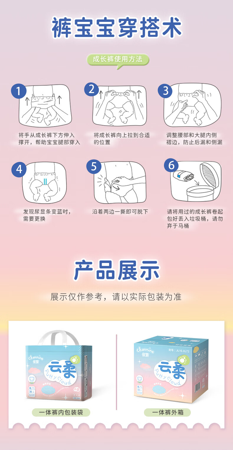 佳婴云柔拉拉裤男女宝宝超薄透气成长裤干爽婴儿尿不湿小内裤式 XL码(9-14KG)72片