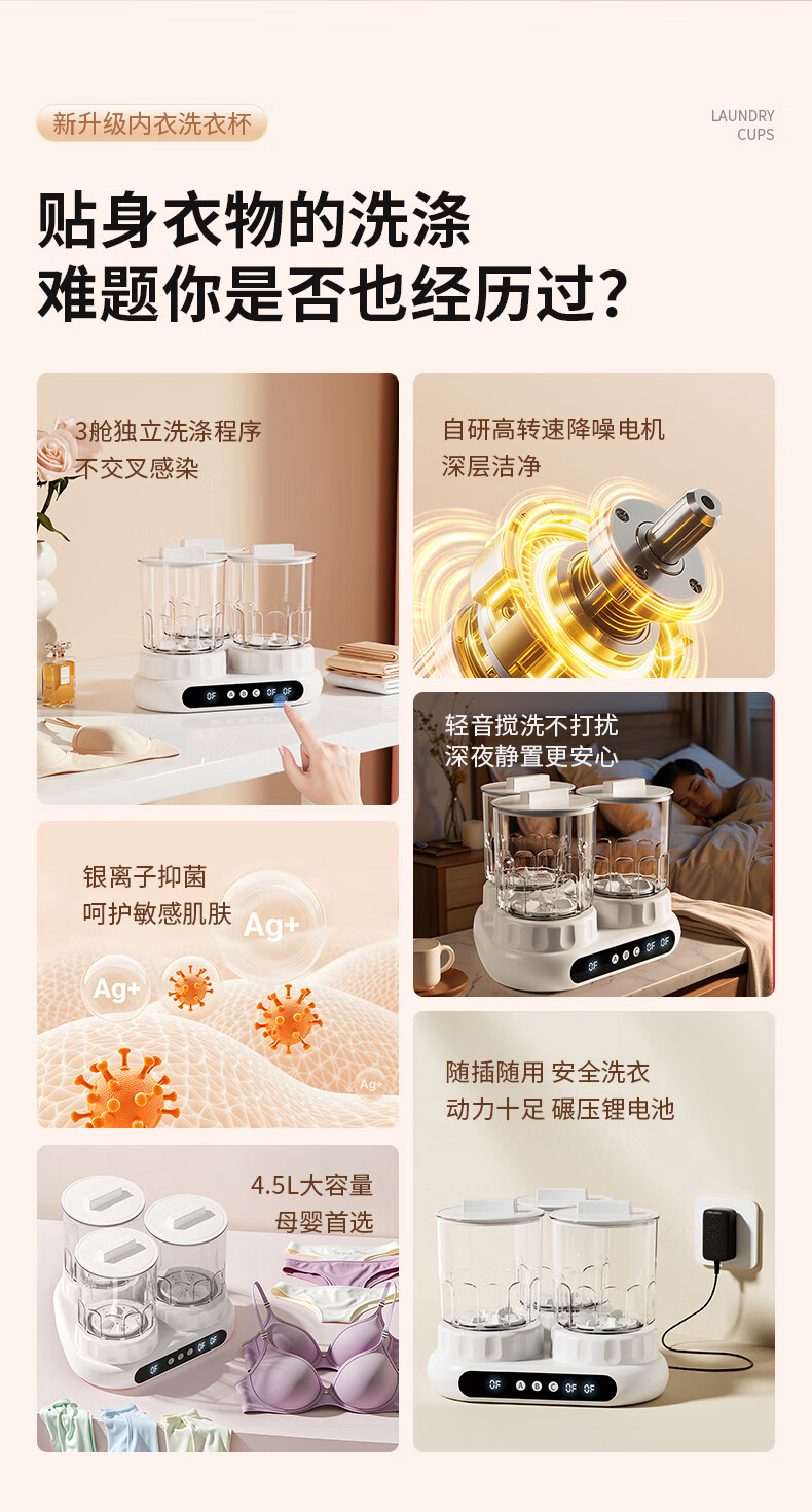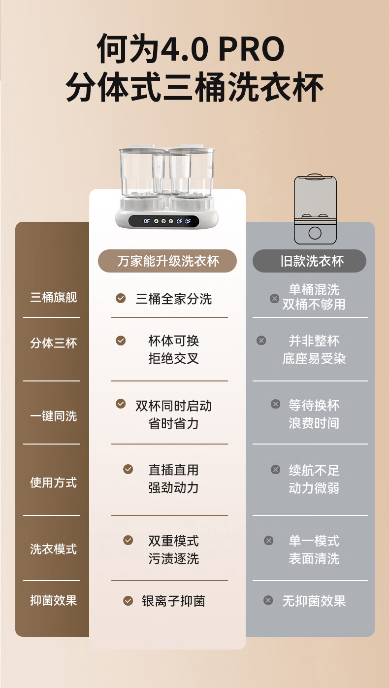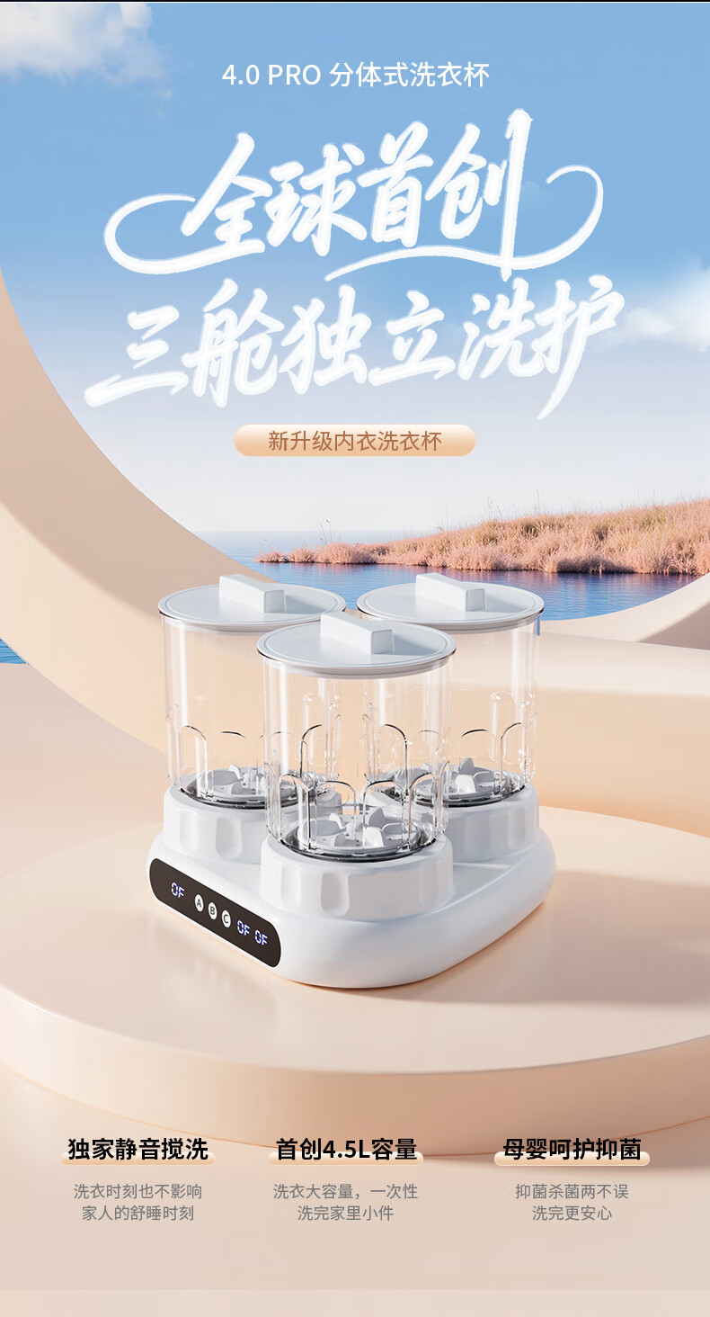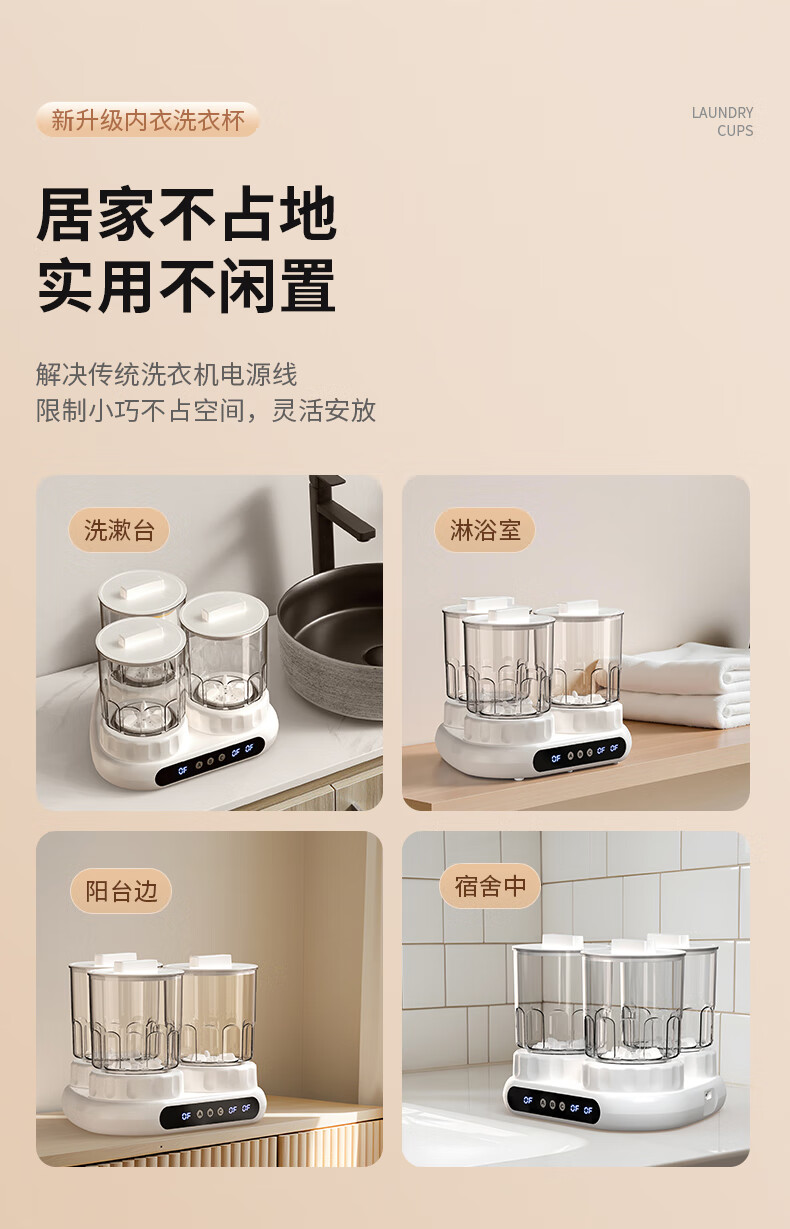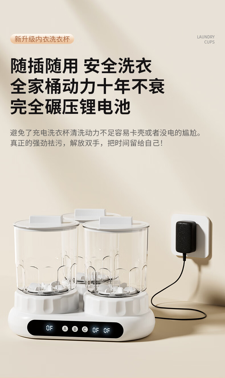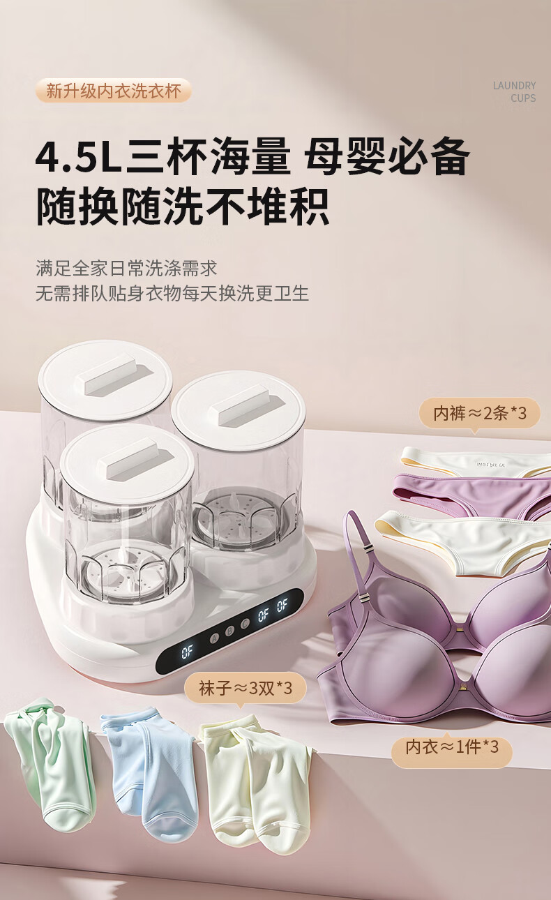 万家能洗衣杯内衣洗衣机内衣裤专用迷你小型三杯桶筒洗袜子机半全自动小洗衣机婴儿宿舍便携式懒人清洗机 PRO【三杯独立分】无刷电机+分仓专控+银离子抑菌