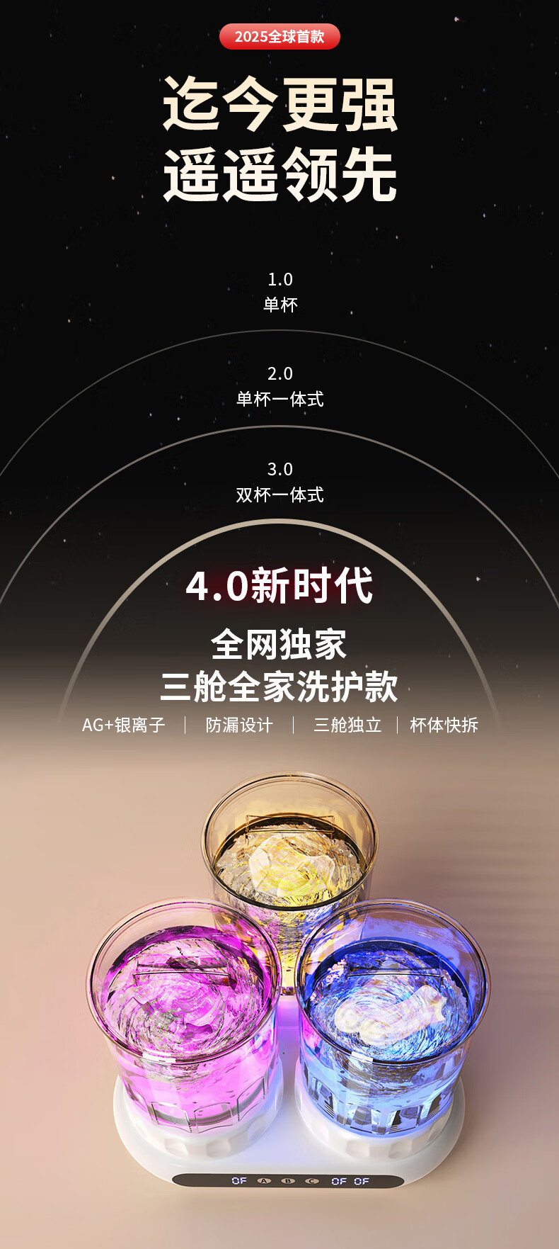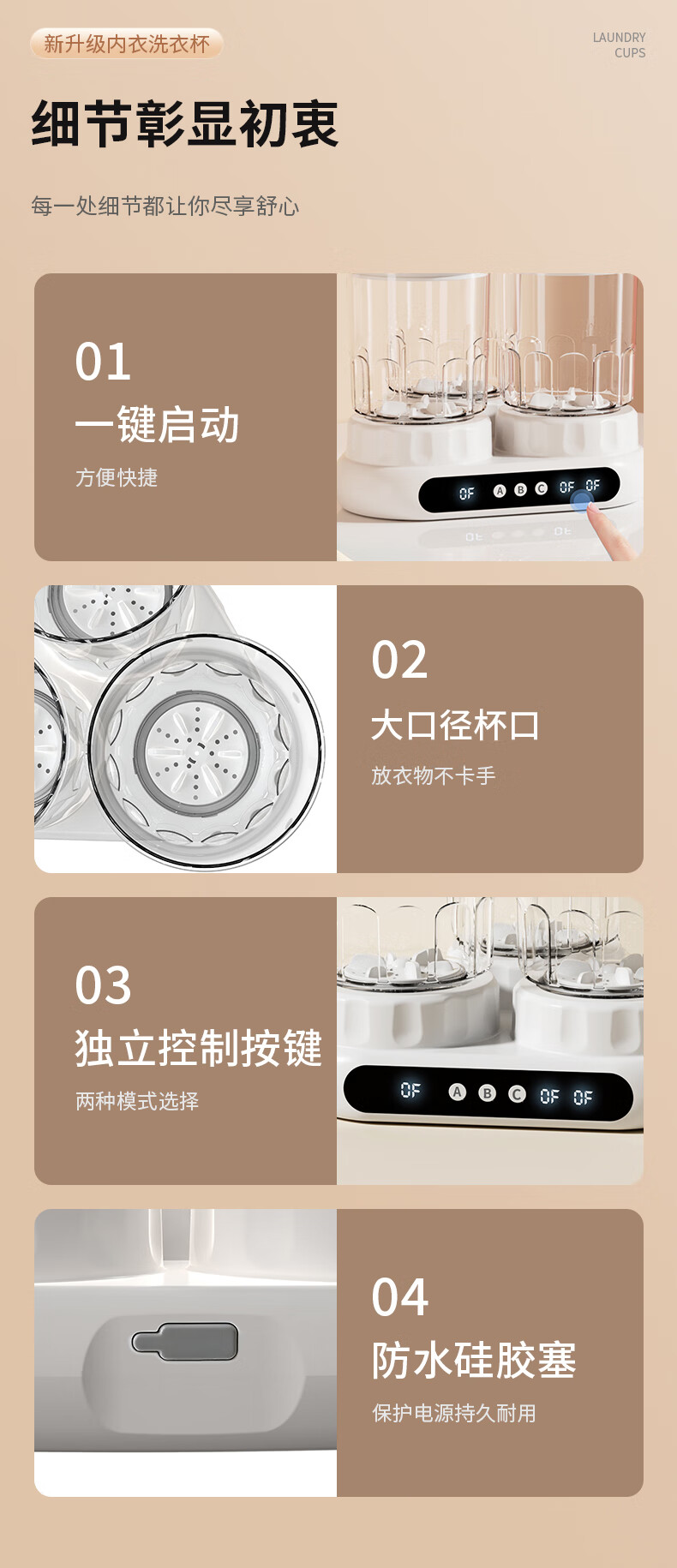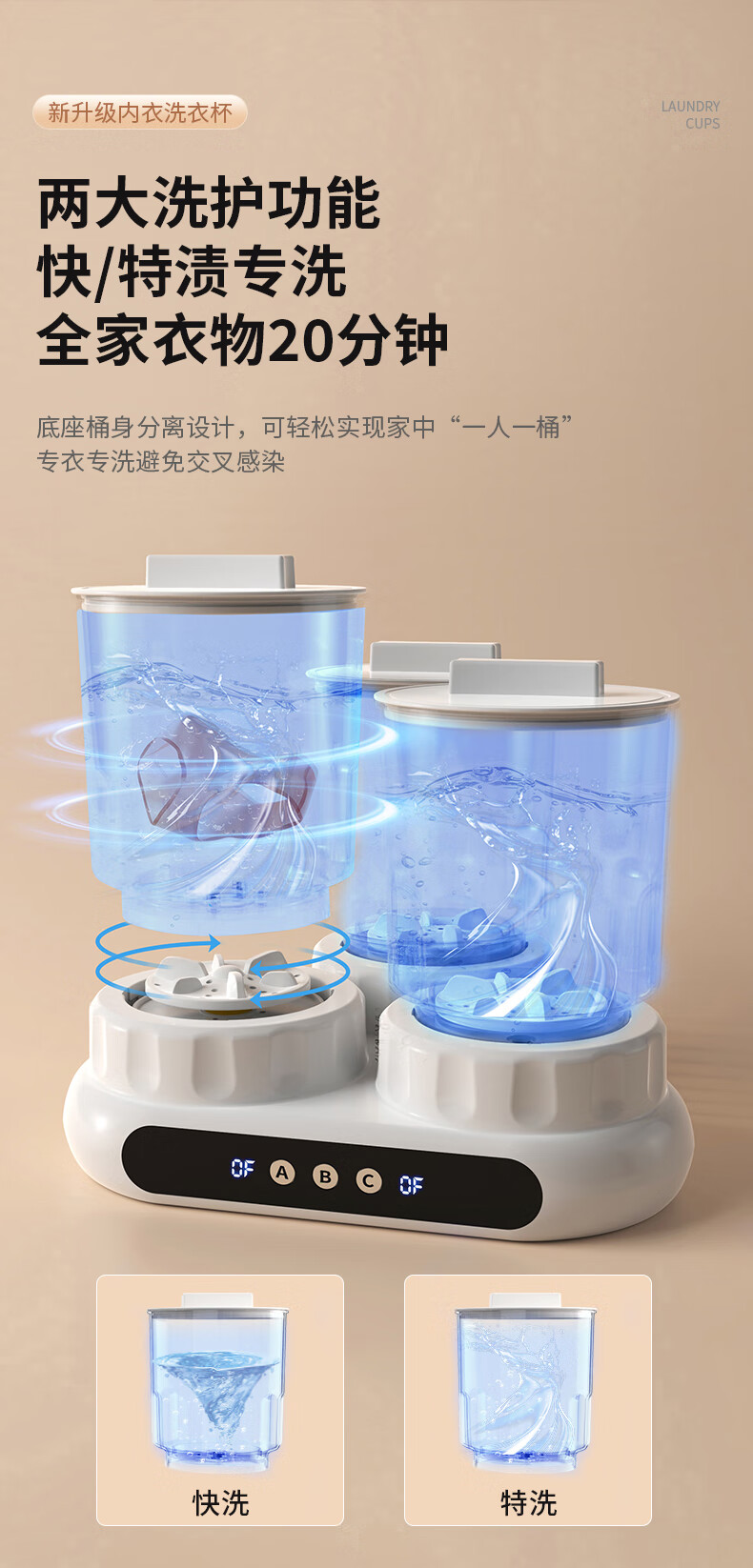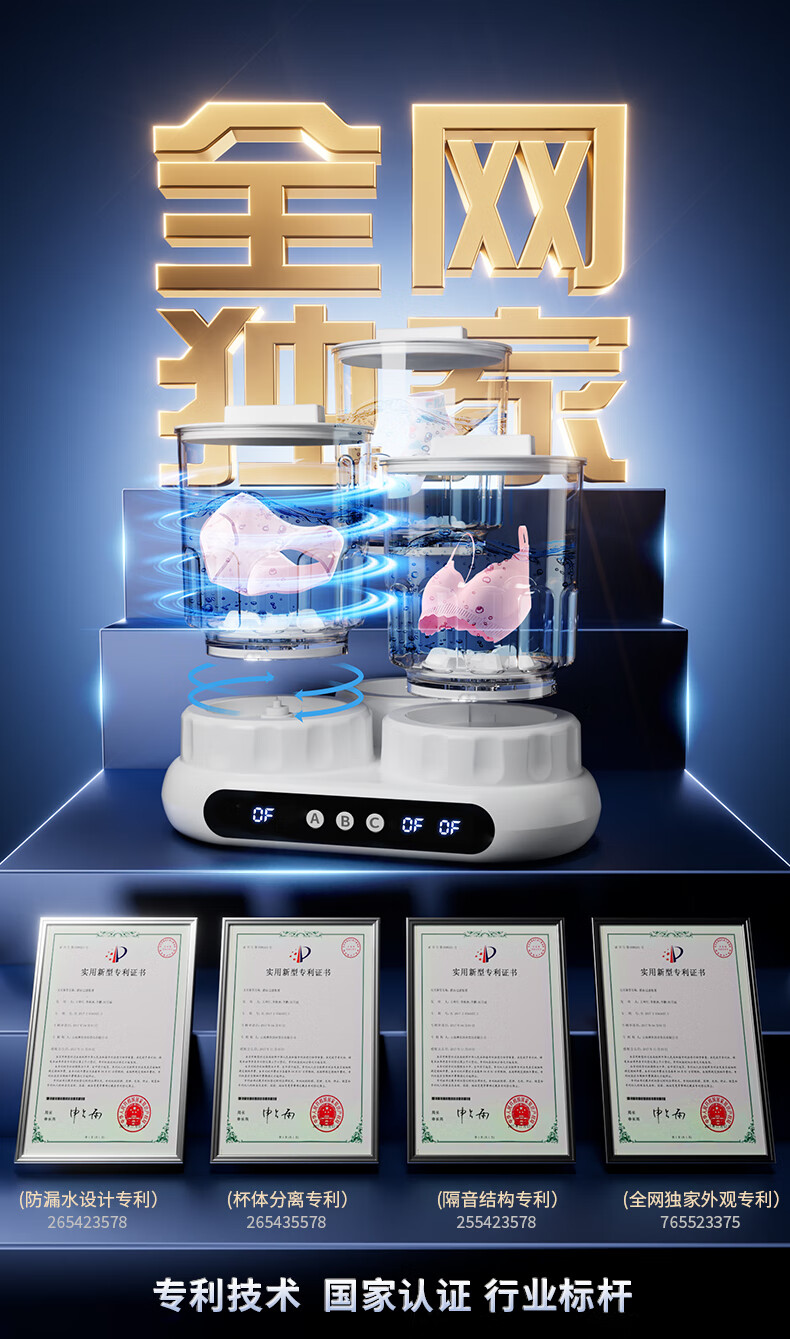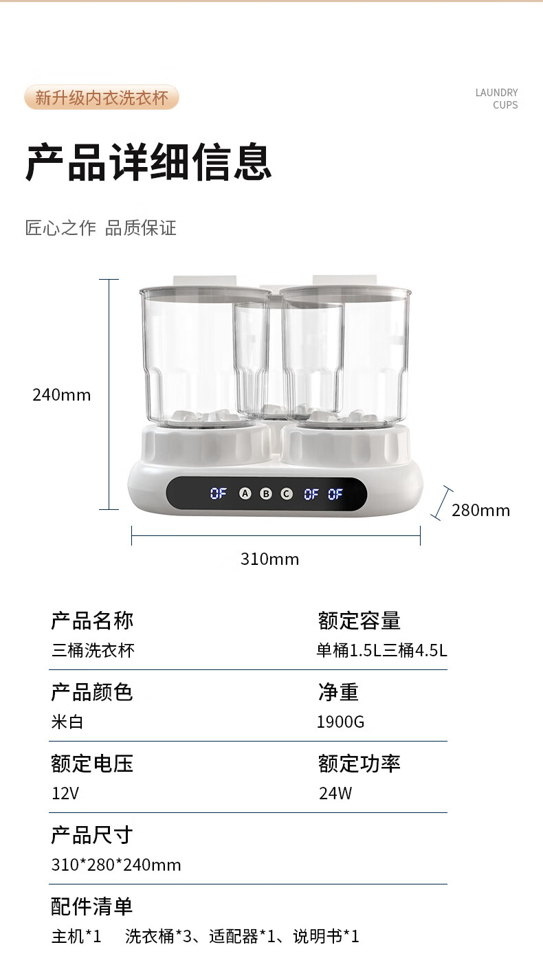 万家能洗衣杯内衣洗衣机内衣裤专用迷你小型三杯桶筒洗袜子机半全自动小洗衣机婴儿宿舍便携式懒人清洗机 PRO【三杯独立分】无刷电机+分仓专控+银离子抑菌