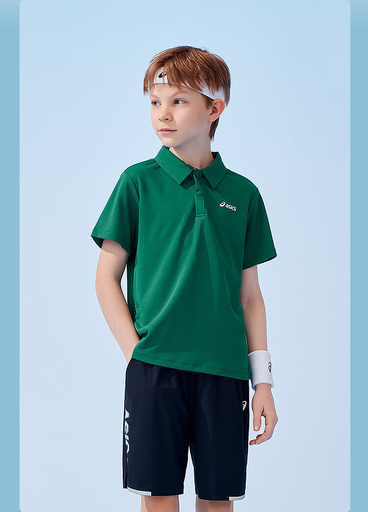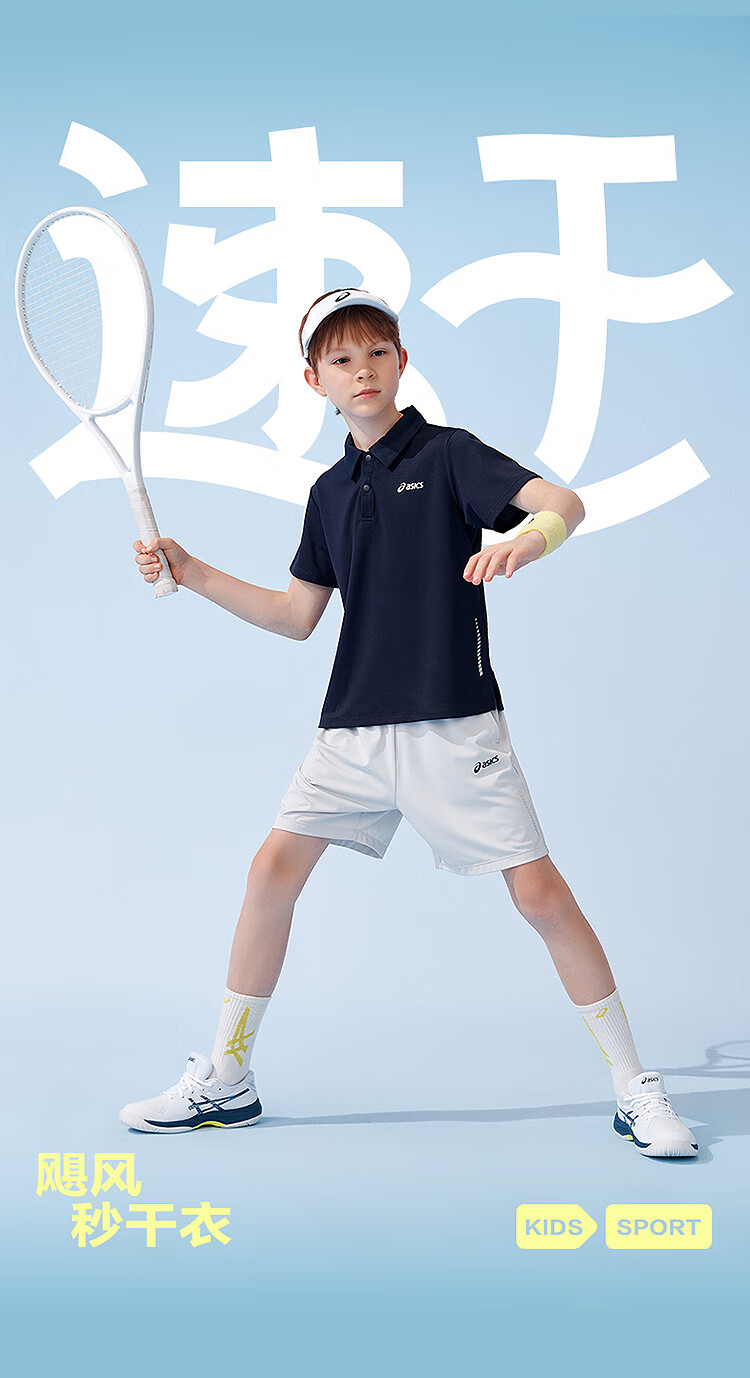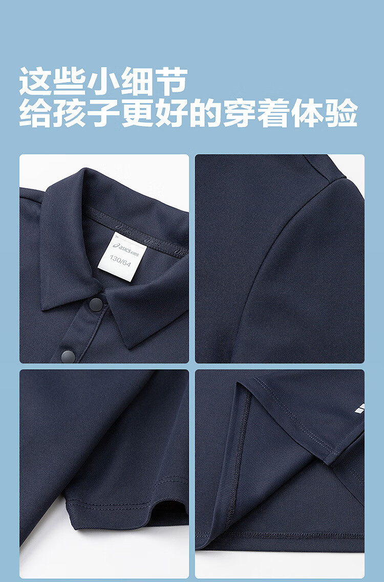 亚瑟士(asics)童装2025年夏季吸湿速干POLO领透气舒适运动短袖332251172405