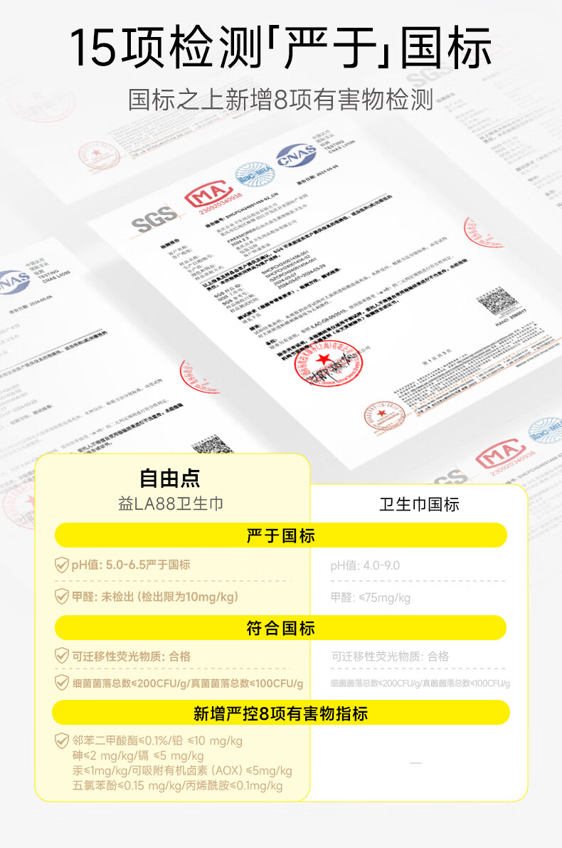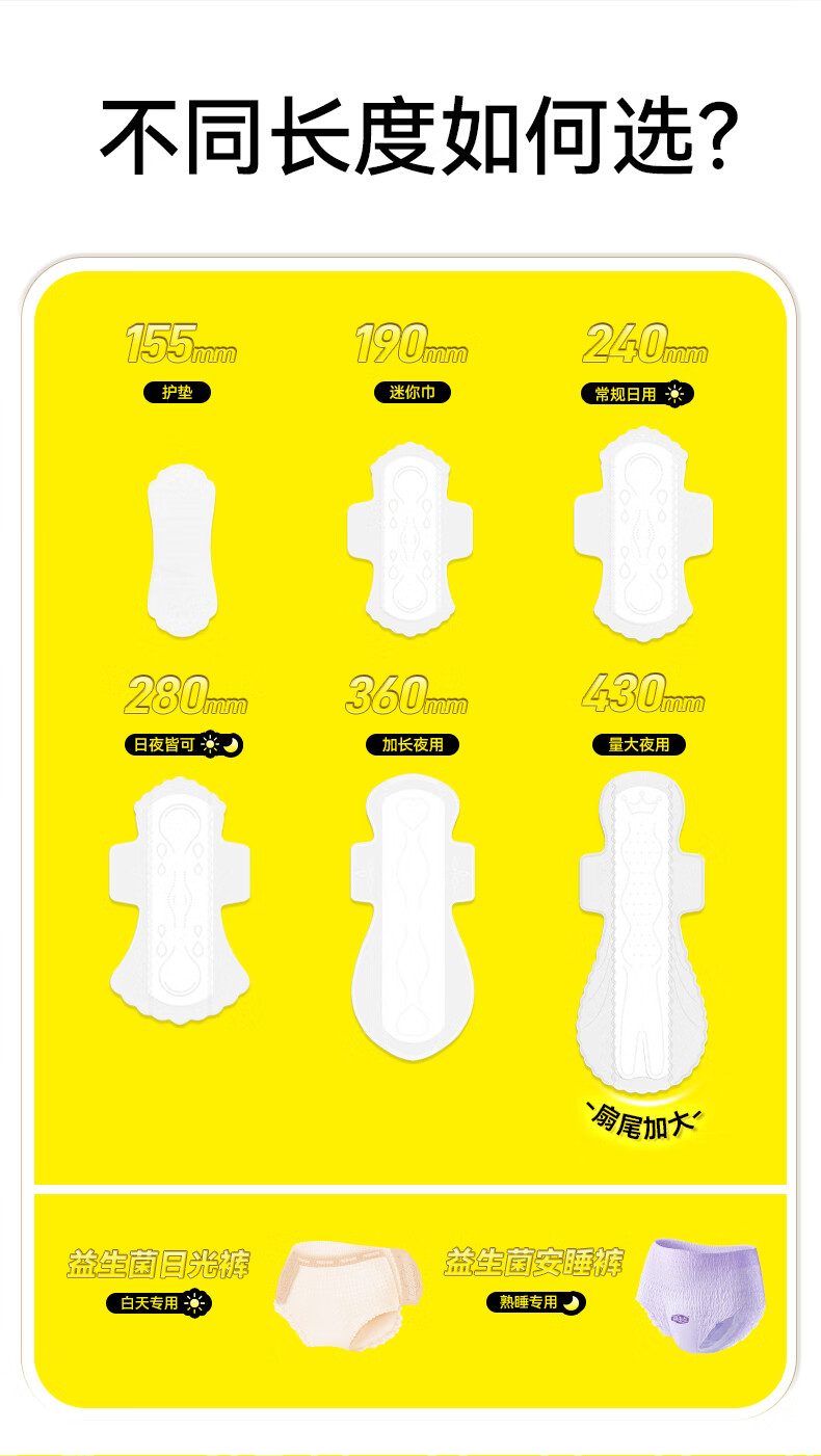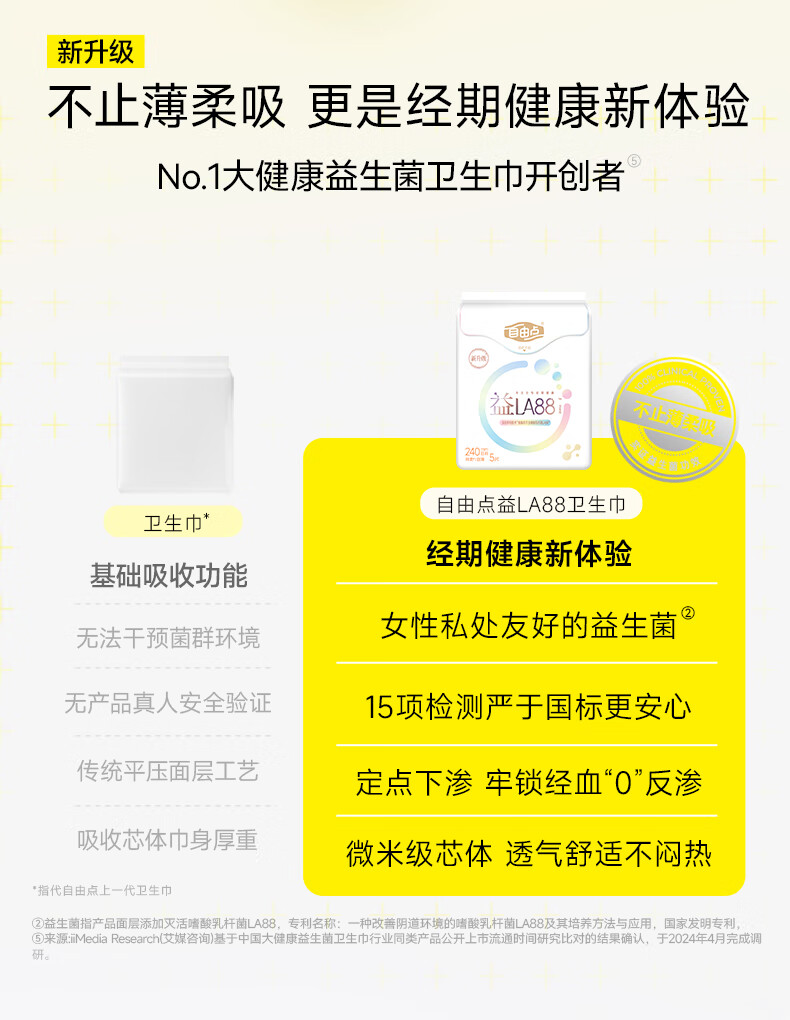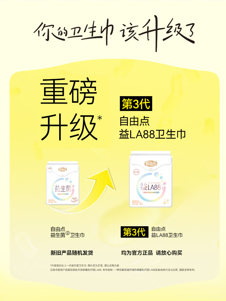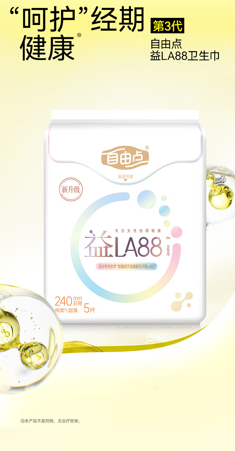 自由点益生菌夜用卫生巾 超薄透气姨妈巾280mm 单包5片 京东自营
