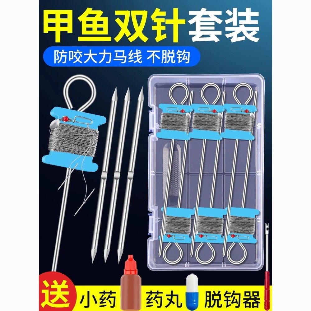甲鱼针双针套组甲鱼钩成品大力马子线加粗钓甲鱼王八鳖针凹槽直针【11月1日发完】