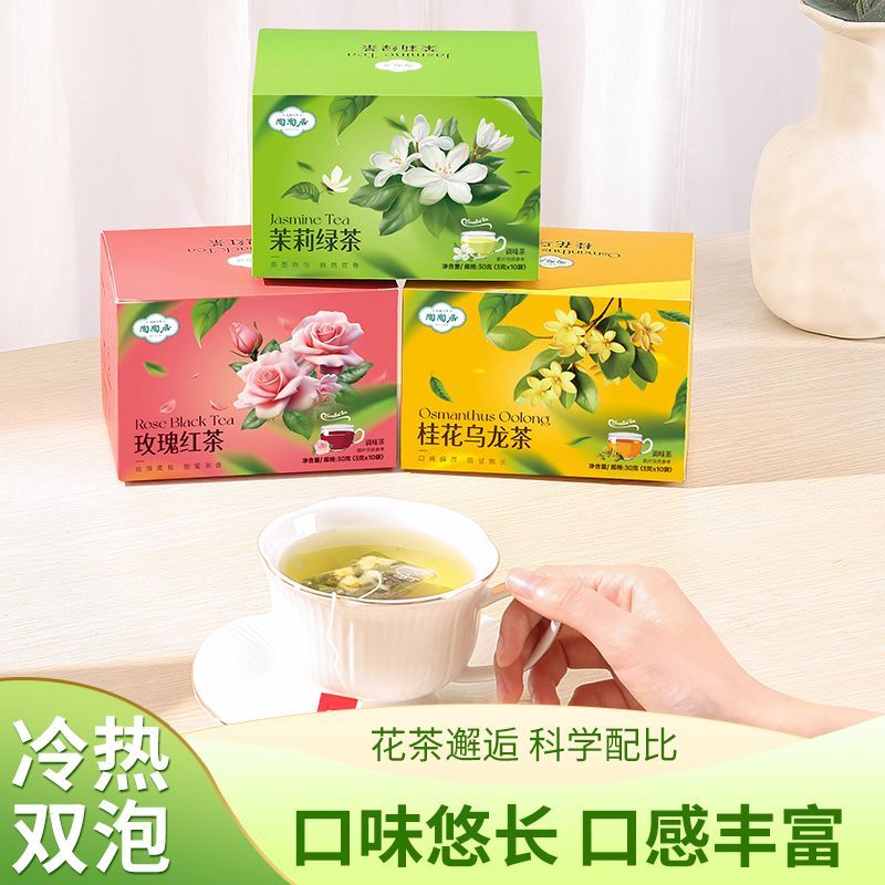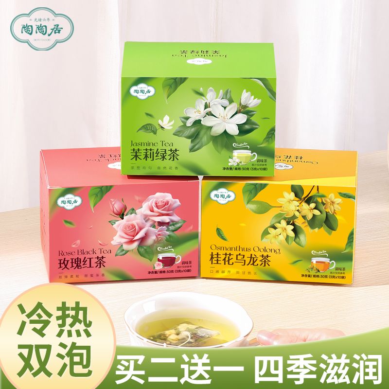 陶陶居茉莉绿茶玫瑰红茶桂花乌龙茶冷热泡茶三角茶包独立
