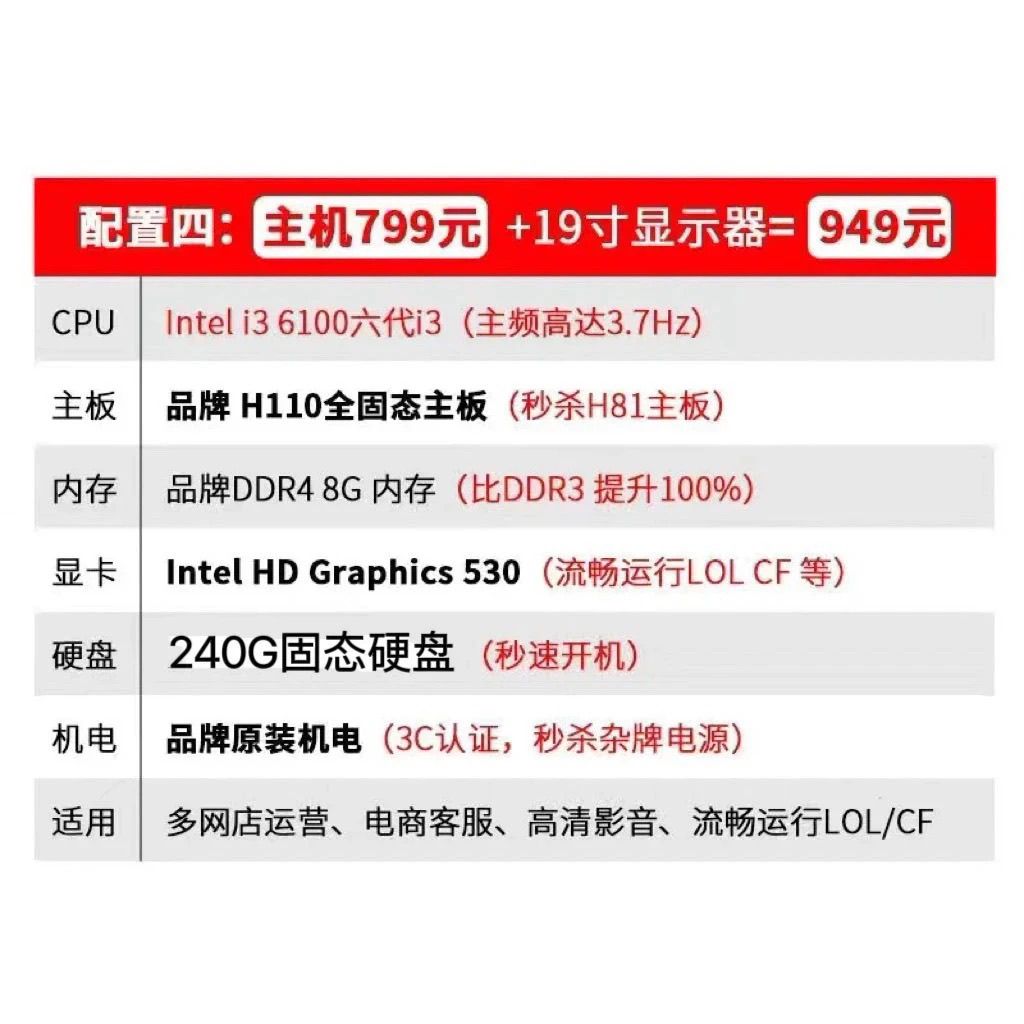 特价四核 组装机 i3 六代 i5 4590 办公家用公司电脑主机台式