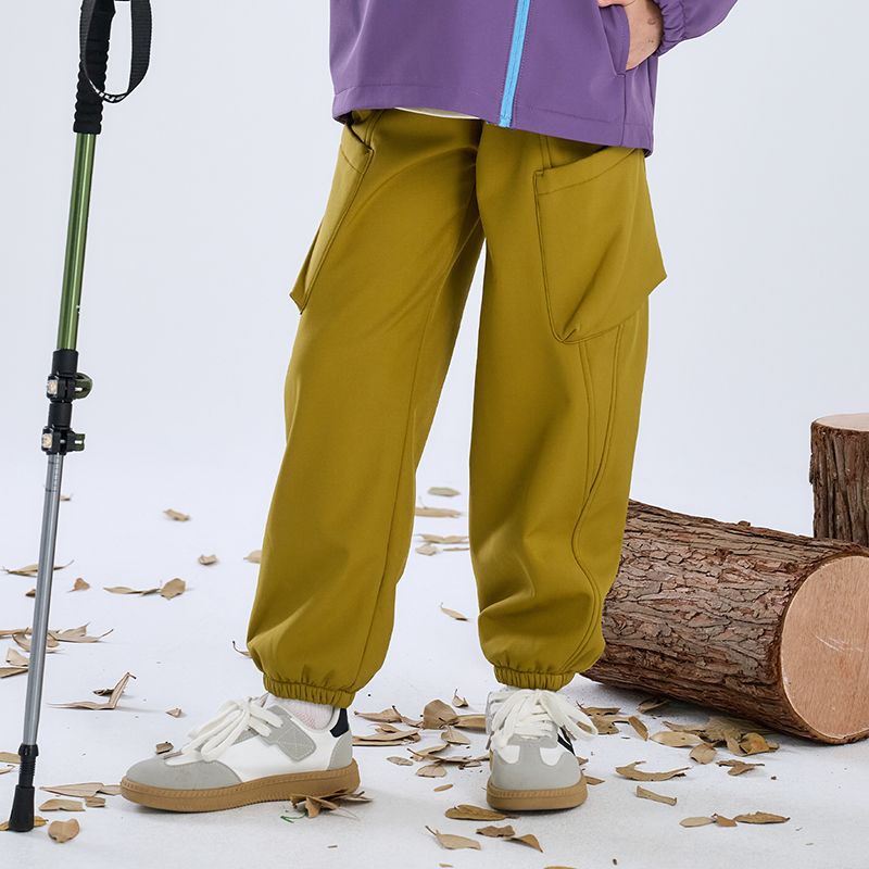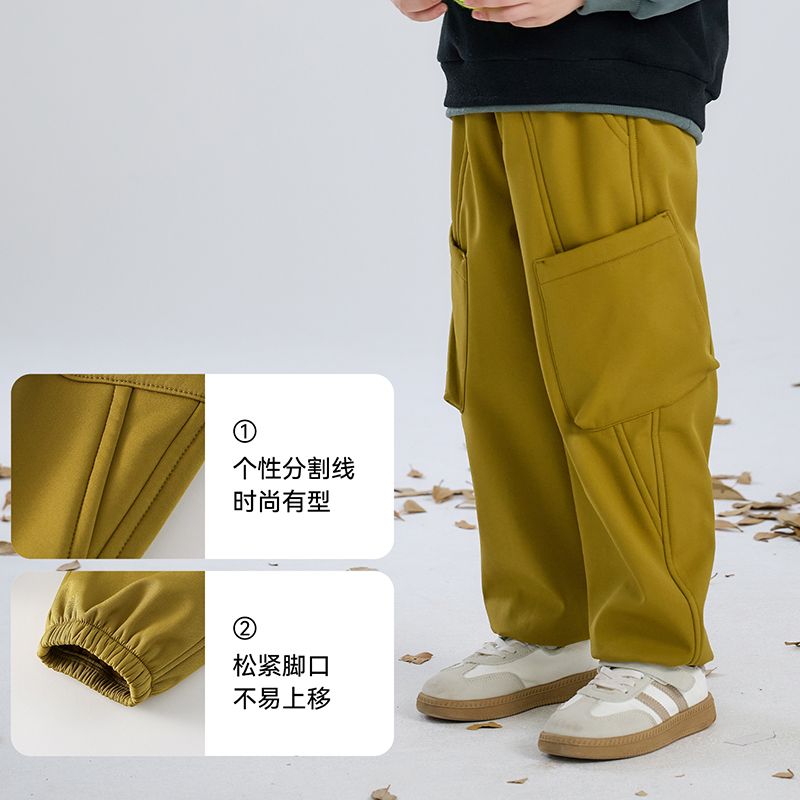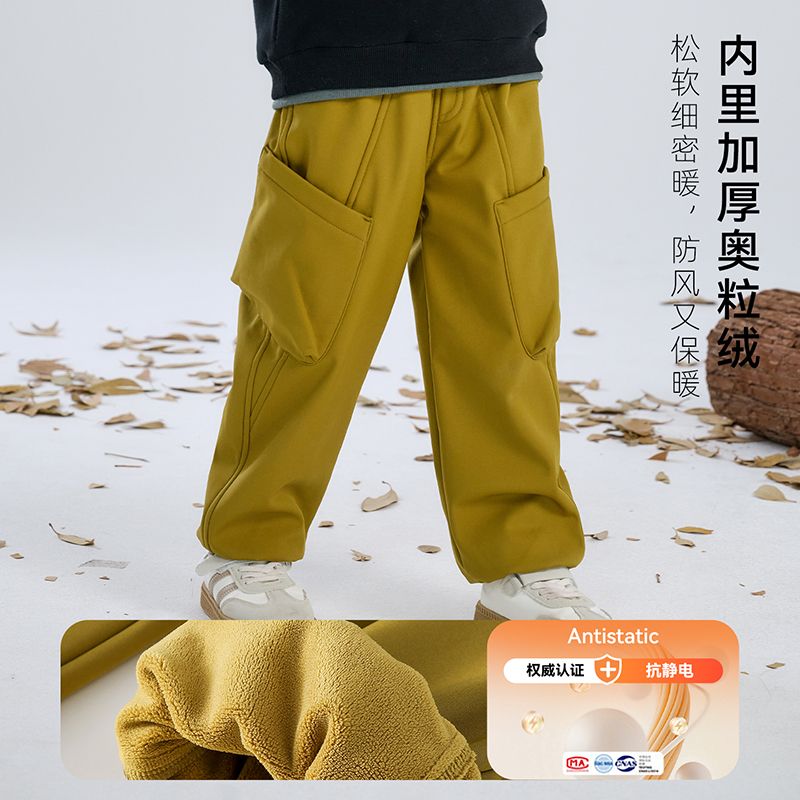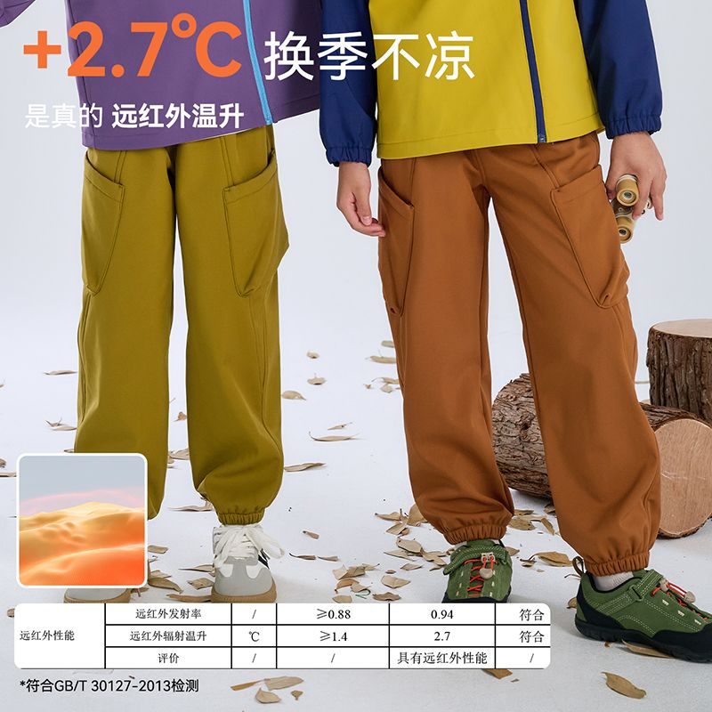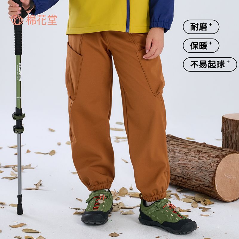 棉花堂儿童梭织加绒软壳裤中大童运动户外加绒红外升温百搭长裤潮